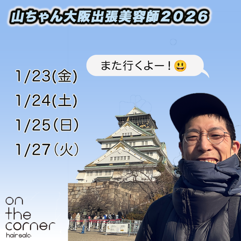 年明けまた大阪行きます!2026年多毛カット名人山ちゃん大阪出張美容室